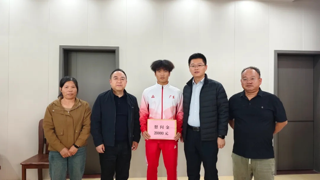 12月3日,县委副书记董明、副县长叶剑斌带队到大桥镇慰问在全国第十二届残疾人运动会暨第九届特殊奥林匹克运动会铁人三项赛事中获得亚军的仁化籍运动员刘超,向他致以热烈祝贺和诚挚问候。