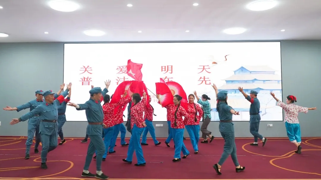 活动现场,县关工委相关负责人发表了开场致辞。随后,情景歌舞《红军颂》精彩上演,以艺术形式生动再现了长征的壮丽风貌。紧接着,宣讲人员以《关爱明天 普法在先》为主题,结合实际案例,深入浅出地讲解了未成年人法律知识。禁毒对唱节目《母子的心意》、戏曲舞蹈《京之韵》以及师生互动环节轮番登场,将艺术表演与教育主题紧密结合,赢得了学生们的阵阵掌声。
