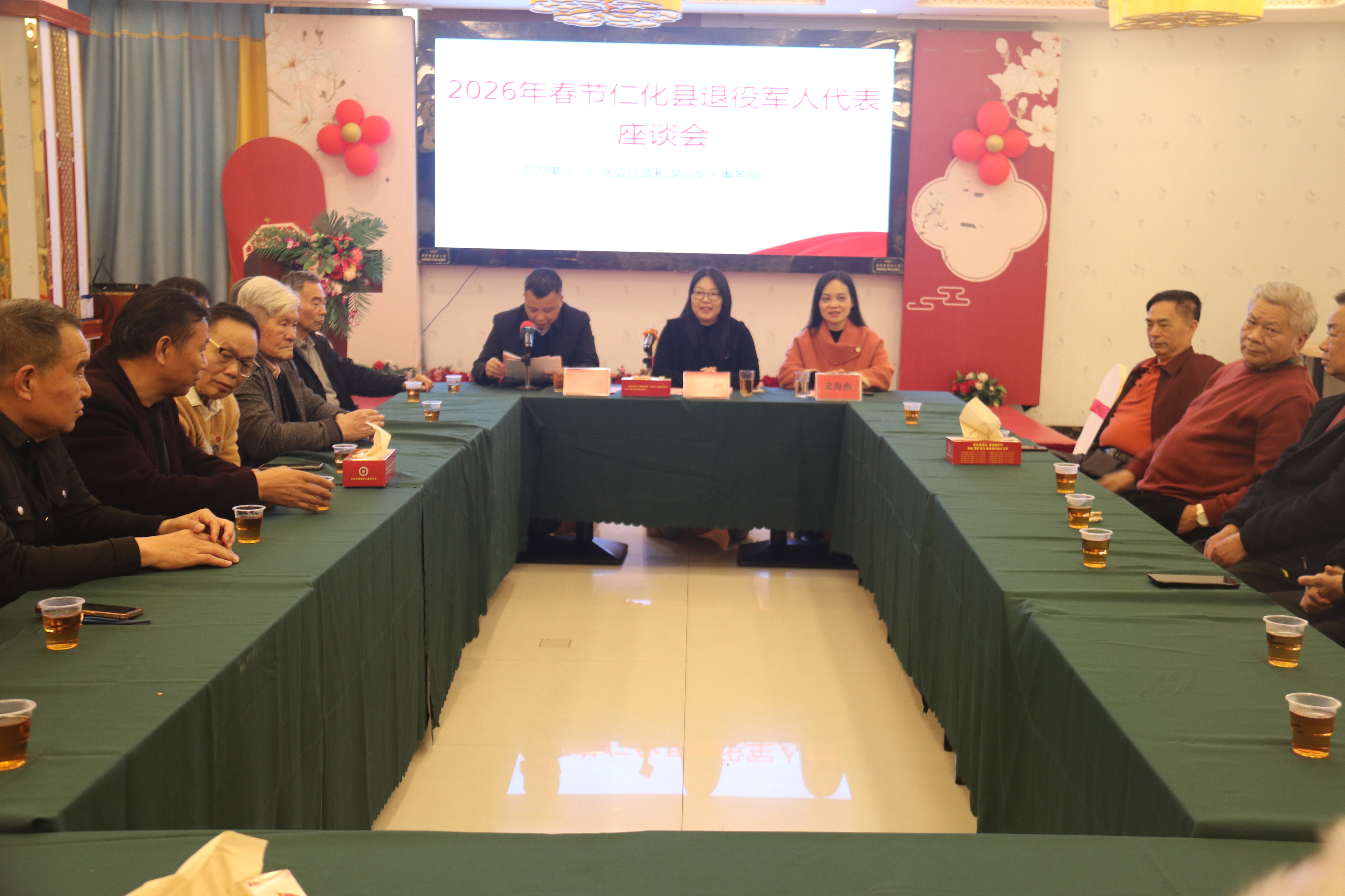 新春将至,暖意融融。2月5日,仁化县召开2026年春节前退役军人代表座谈会,向全县退役军人致以新春问候与崇高敬意。仁化县民政和退役军人事务局局长叶志琴,副局长麦海燕,副局长刘志勇出席,二等以上功臣、全国模范退役军人、参战退役军人代表、烈属代表以及见义勇为退役军人代表等齐聚一堂,共忆军旅峥嵘,共谋发展蓝图,共迎新春佳节。