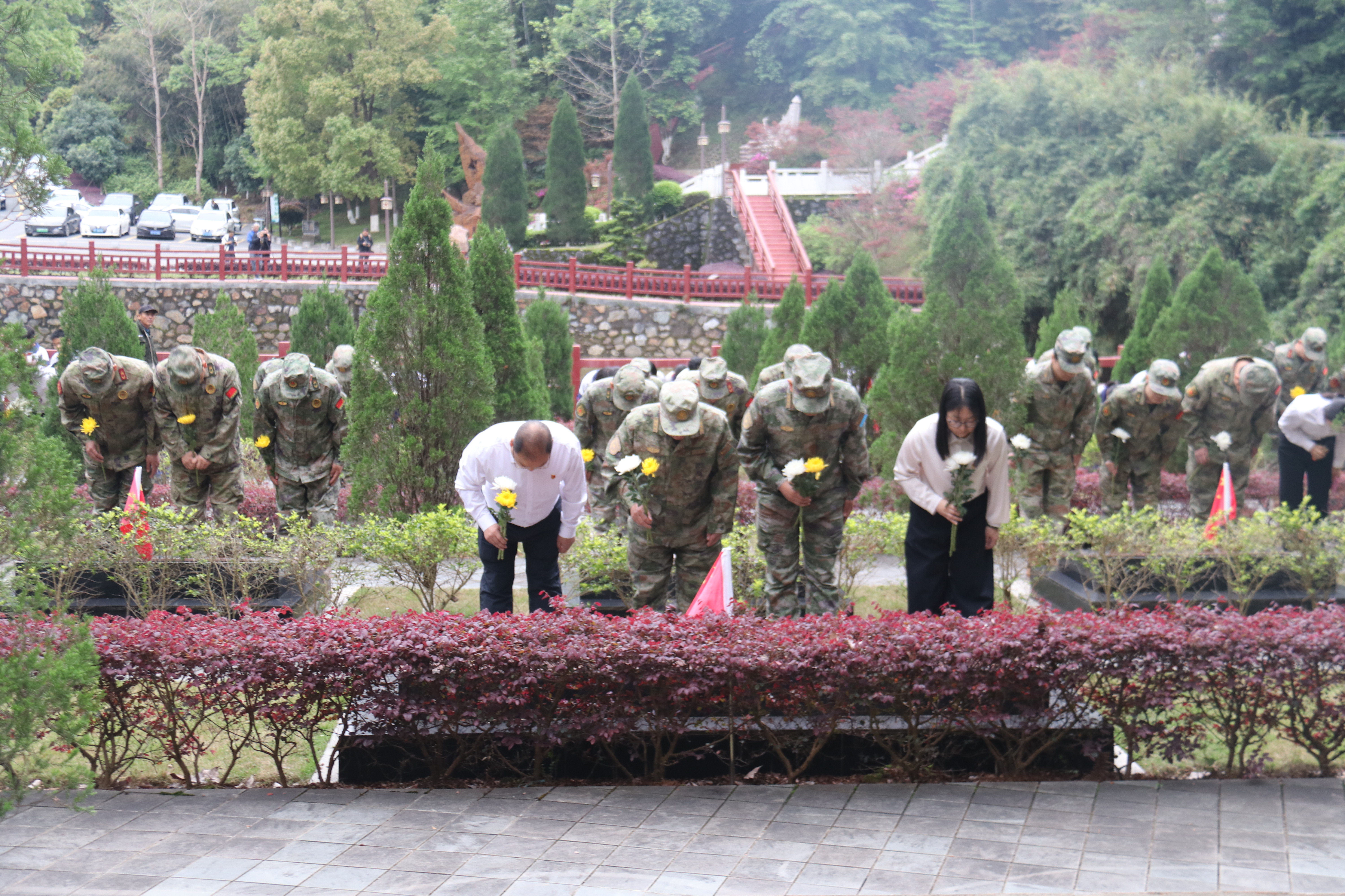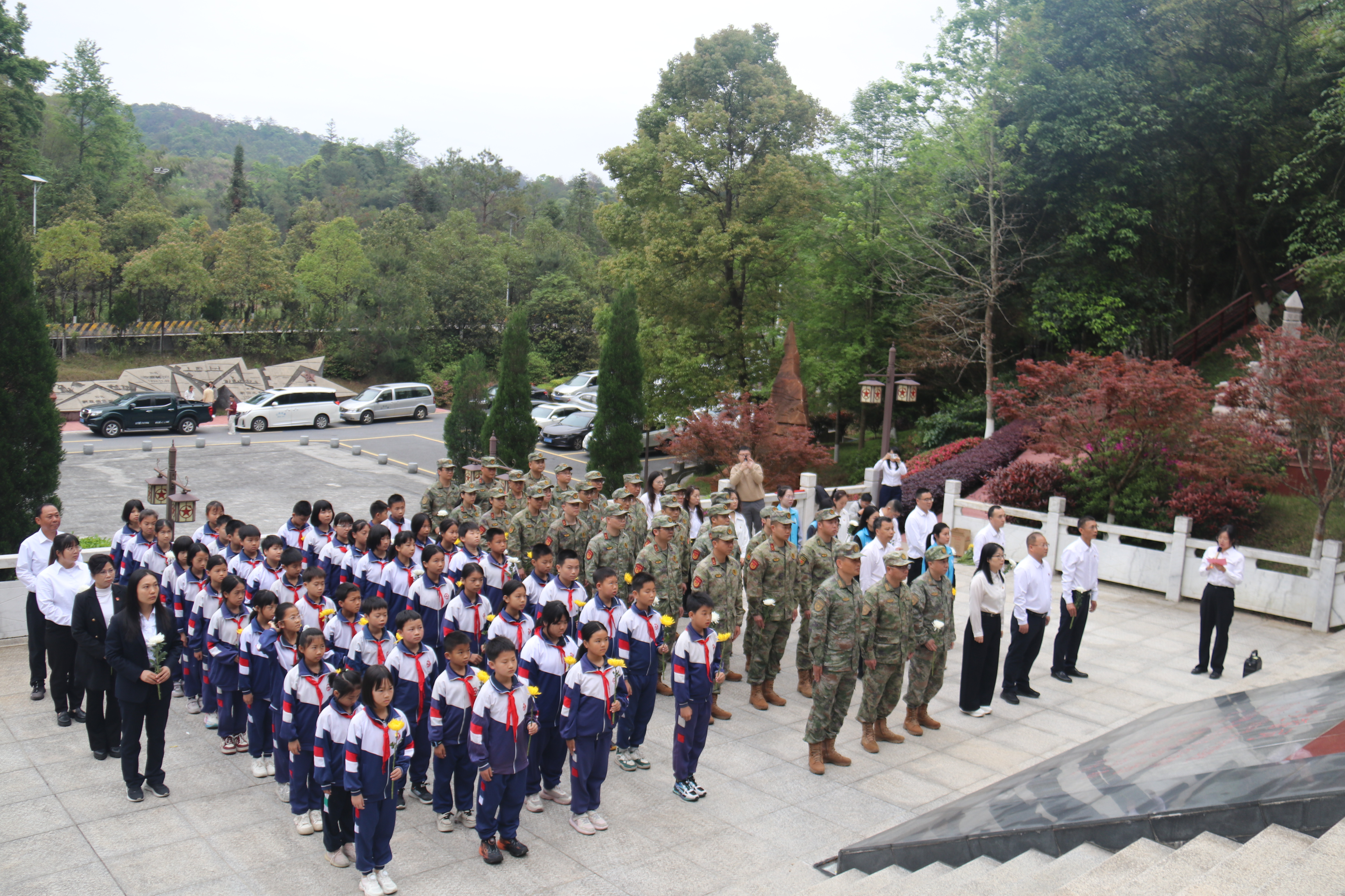 为传承红色基因、赓续红色血脉,4月2日,仁化县人武部、仁化县民政和退役军人事务局联合城口镇政府、城口学校,组织现役军人代表、退役军人代表、党员干部、师生代表共100余人走进铜鼓岭红军烈士纪念园,开展“追寻·2026·清明祭英烈”主题实践活动。