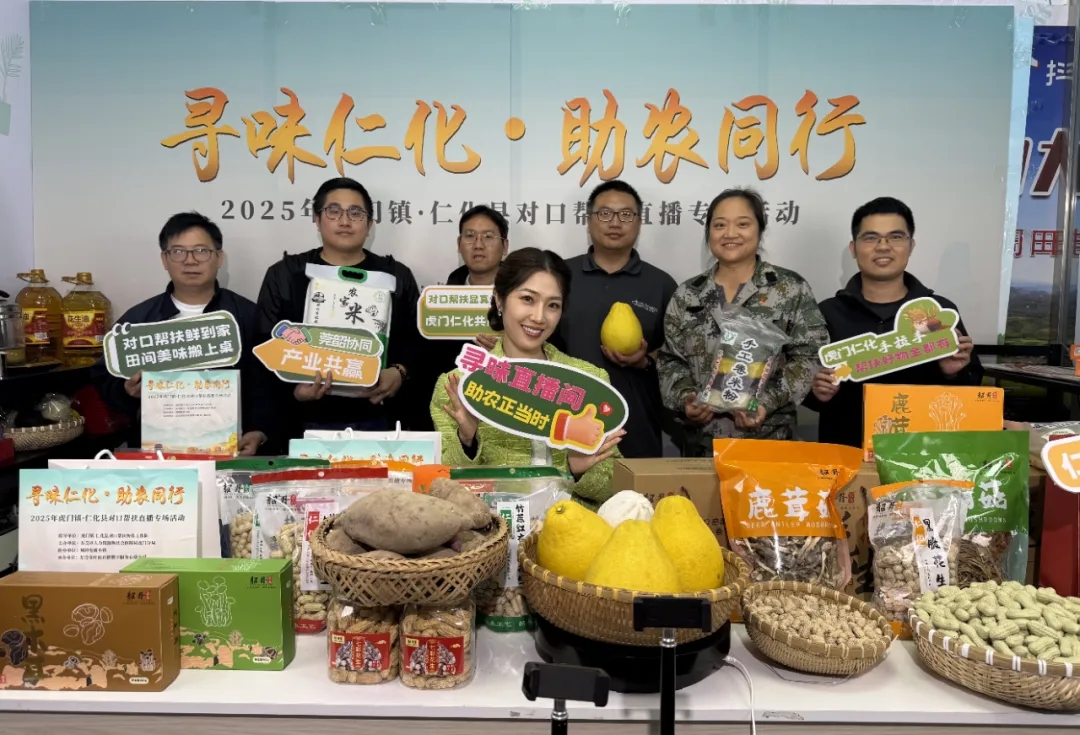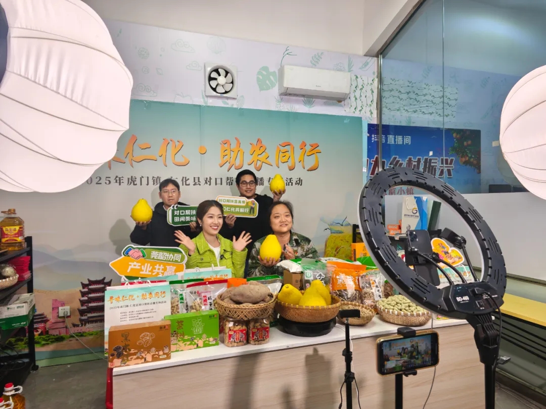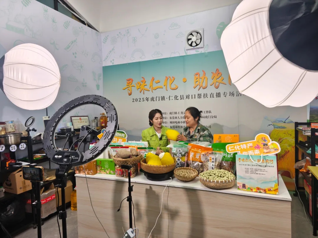 为推动跨区域资源整合与协同发展,助力仁化特色产业升级与农民增收,12月4日,2025年虎门镇・仁化县对口帮扶“寻味仁化 助农同行”直播专场在周田电商小镇火热开播。