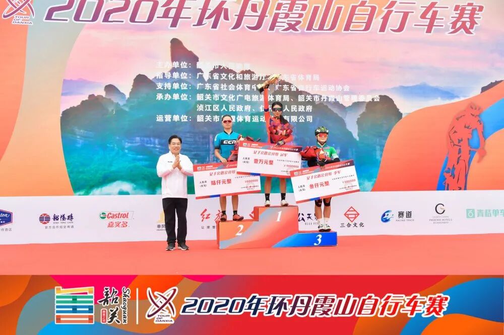 市委书记王瑞军,市委副书记、代理市长陈少荣等领导嘉宾共同为活动鸣笛 韶关市委书记王瑞军,韶关市委副书记、代理市长陈少荣,广东省体育局群体处长钟志金等领导嘉宾出席开幕式。上午8点30分,鸣枪发令后,来自全国各地的近万名的专业运动员和骑行爱好者从丹霞山南门出发,正式开启骑行之旅。 此次赛事由韶关市人民政府主办,韶关市文化广电旅游体育局、韶关市丹霞山管理委员会、浈江区人民政府、仁化县人民政府承办。设自行车竞赛组(60公里男子公开组、43公里男子公开组、43公里本地组、43公里女子组)、11公里骑游组和平衡车体验赛。赛道设置在广东最美旅游公路之一的阅丹公路上,全长60公里,线路串联了水上丹霞、韶阳石等众多景点,途经夏富古村、古竹坪村等多个古村落,沿途山色秀美如画。   60公里公开组冠军 施文通: 赛事非常地好,去年也来过,感觉今年比去年更好,而且路况非常地干净,赛道也非常漂亮,路过丹霞山,特别是石头的景观,给我感觉非常震撼,总体赛道体验下来非常刺激。 在做好疫情防控的基础上,主办方沿赛道设置了多个补给点供选手补充能量,还设置了多个风景“打卡点”,选手在骑行比赛感受速度与激情的同时,感受丹霞山特有的生态环境和大自然鬼斧神工,体验一番独特的岭南风情和田园风光。 骑游组的选手们愉快出发 参赛选手: 主办方也不错,环境、安全措施都不错,当地人民非常热心,我明年还会来。 据悉,环丹霞山自行车赛是韶关市深入贯彻落实广东省委、省政府“一核一带一区”区域协调发展战略,推动生态优势向发展优势转化,打造“户外运动天堂”品牌,推进体育+旅游融合发展的重要举措。 今年,韶关市还将在丹霞山举办穿越丹霞山50公里徒步赛和丹霞山山地马拉松两项大型体育赛事,把丹霞山系列户外运动赛事打造成全省文化旅游体育融合发展的典范,擦亮我市“户外运动天堂”品牌。