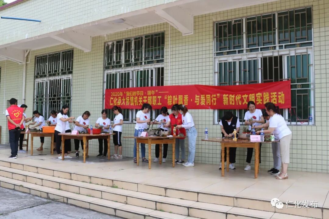 丹霞街道 为传承和弘扬中华传统民俗文化,宣传普及端午节传统文化及习俗,提升节日文化内涵,引导干部职工深化对中华优秀文化的认知认同,增强干部职工凝聚力,在端午节来临之际,6月23日上午,丹霞街道在街道文化站组织开展了我们的节日“端午·文明仁化行”文明实践活动。 活动中进行了创文知识和端午节习俗有奖问答,干部职工们踊跃回答问题,现场气氛十分活跃。 随后,进入大家齐齐动手包粽子环节。在包粽子的过程中,大家互相交流、互相学习,待粽子蒸熟后,街道团工委志愿者、妇联志愿者带着粽子来到困境群众家中,为困难群众送上节日慰问和亲切祝福。 董塘镇 活动现场,董塘镇工会会员们踊跃参加,学习如何卷粽叶、放米、捆扎,忙的不亦乐乎。在大家的辛勤劳动下,3000多个饱含祝福的粽子在一天的时间里全部包装完成。 活动结束后,志愿者们还把包好的粽子送给敬老院的老人们品尝,并为他们送去节日问候,让他们切实感受到党和政府的关心和温暖。 大桥镇 闻韶镇