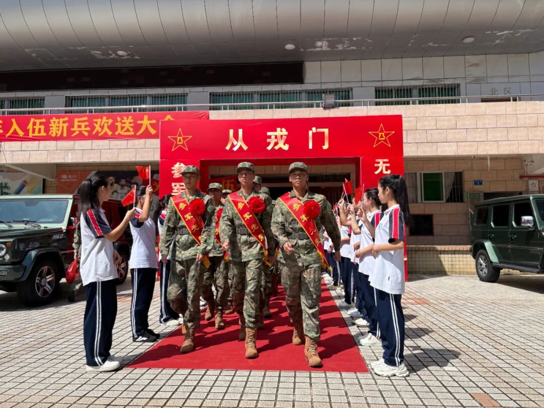 林志强宣读入伍命令。新兵代表带领全体新兵宣誓并发言,表示一定听从指挥,锤炼过硬作风,用青春和热血守护万家安宁,为家乡争光,为国家作贡献。