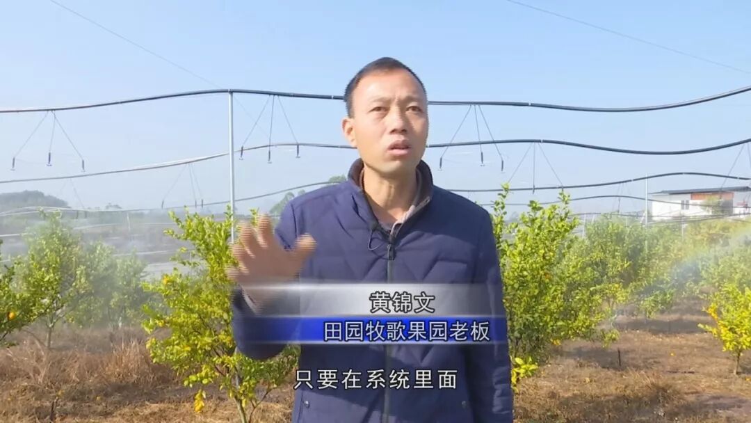 【田园牧歌果园老板 黄锦文】只要在系统里面,我们调好了之后,它也可以自动的进行操作,我们只要分好这个片区需要多少秒,那个片区需要多少秒,然后直接调一个程序它自动去喷药。