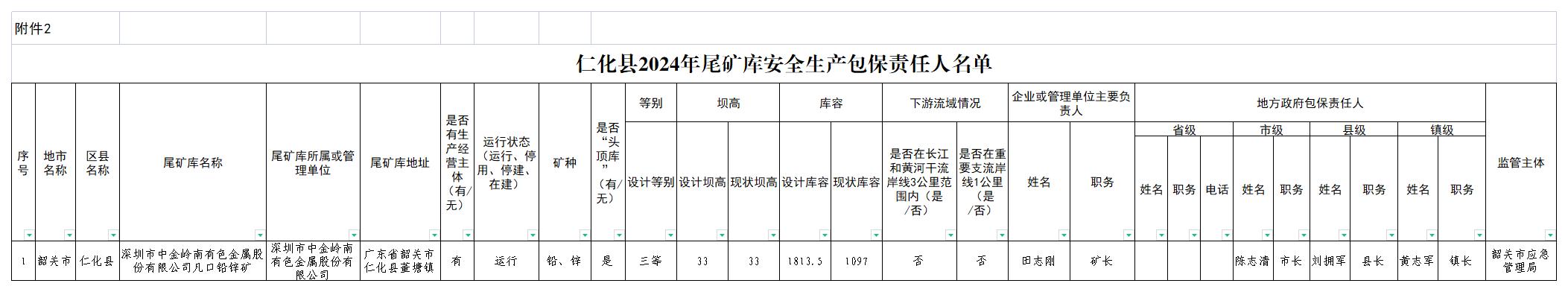 仁化县2024年地下矿山安全生产包保责任人名单和仁化县2024年尾矿库安全生产包保责任人名单
